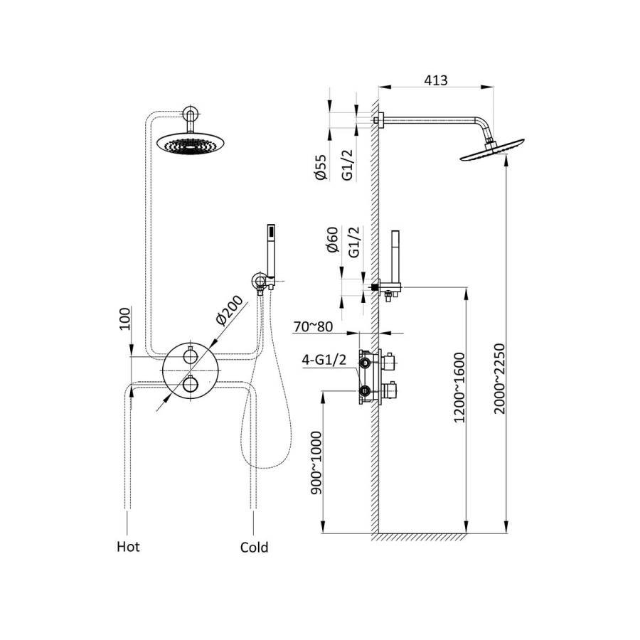 Верхний душ, ручной душ, смеситель со встраиваемой частью |