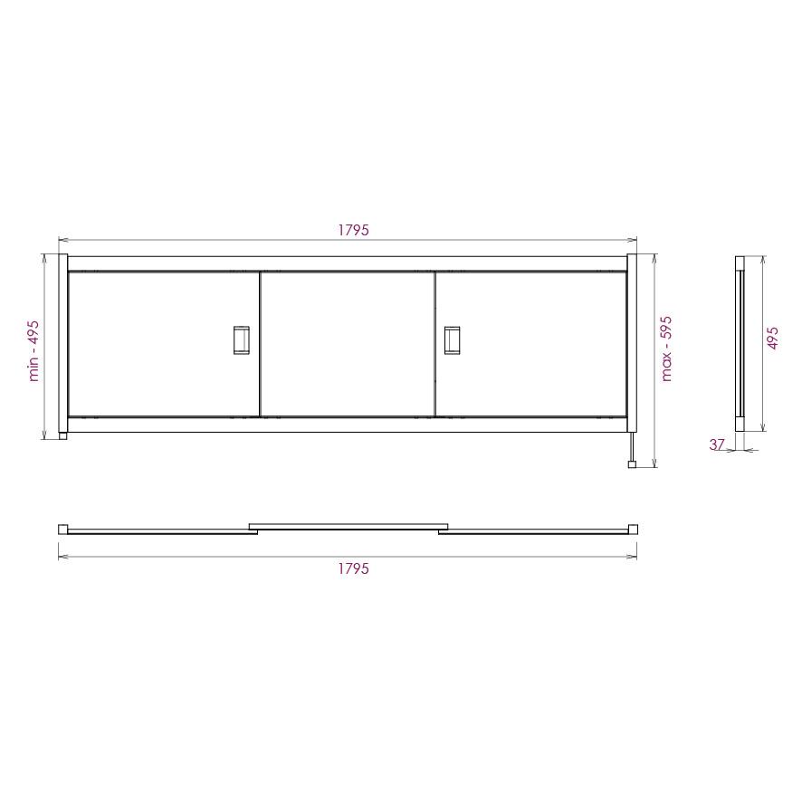 Ножки позволяют регулировать экран по высоте от 52 до 60 см, благодаря этому экран является универсальным и впишется в интерьер любой ванной комнаты.