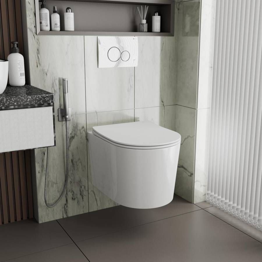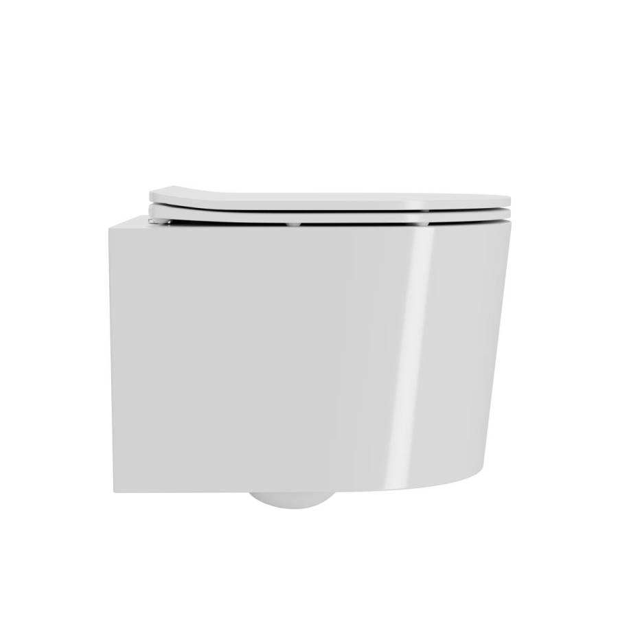 Унитаз настенный керамический безободковый; сиденье для унитаза из дюропласта ультратонкая легкосъемная с функцией плавного закрывания; инструкция/гарантийный талон |