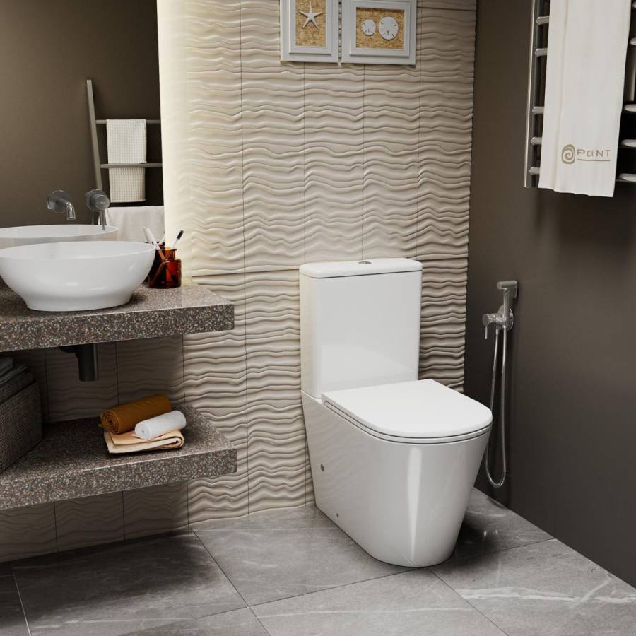 Унитаз керамический безободковый; бачок смывной керамический с нижним подводом воды; двухуровневый спускной механизм; сиденье для унитаза из дюропласта легкосъемное с функцией плавного закрывания; монтажный комплект; инструкция/гарантийный талон |
