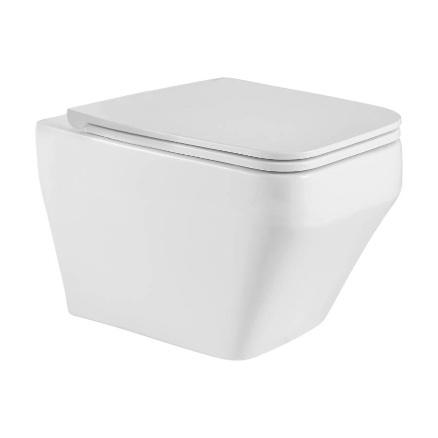 Унитаз настенный керамический безободковый; сиденье для унитаза из дюропласта ультратонкая легкосъемная с функцией плавного закрывания; инструкция/гарантийный талон |