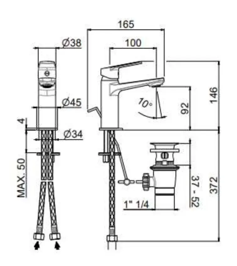 Донный клапан, гибкая подводка, комллект креплений, инструкция по монтажу, гарантийный талон. |