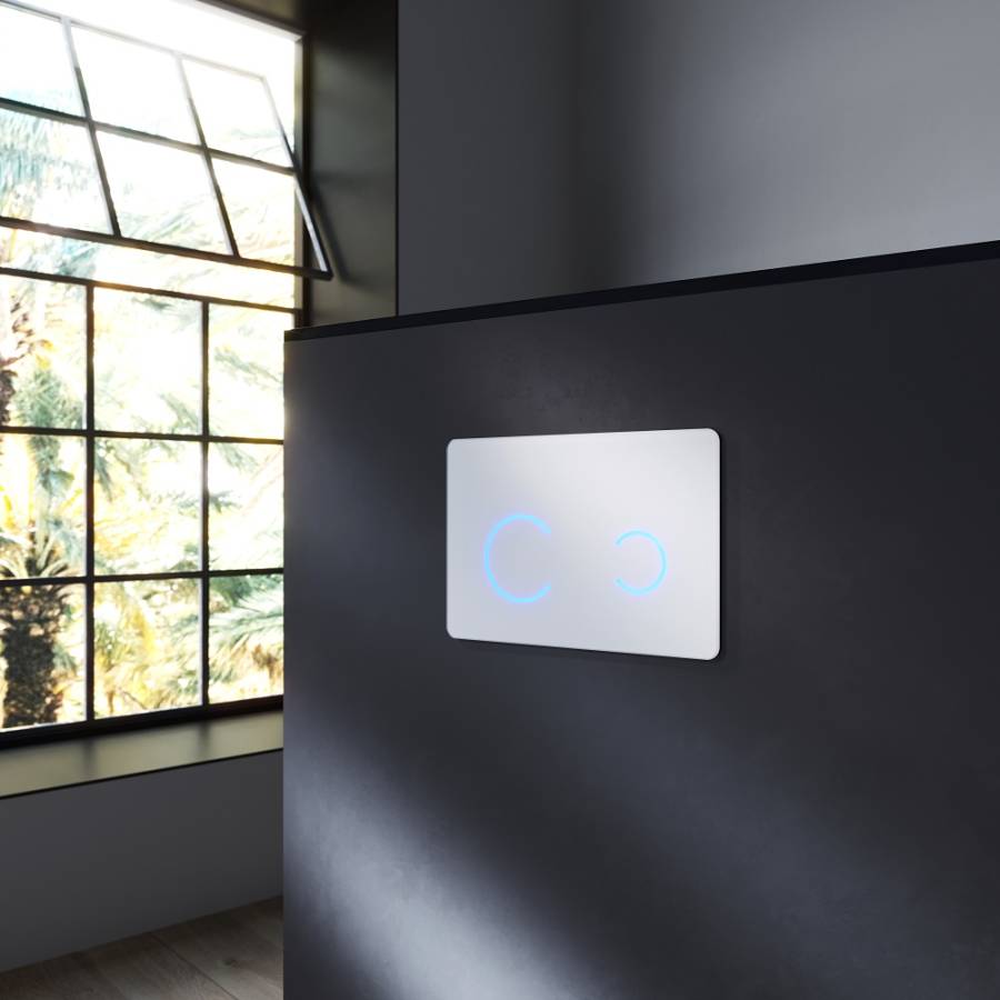 Стильный дизайн – внешняя панель выполнена из белого стекла при активации смыва включается подсветка._x000D_