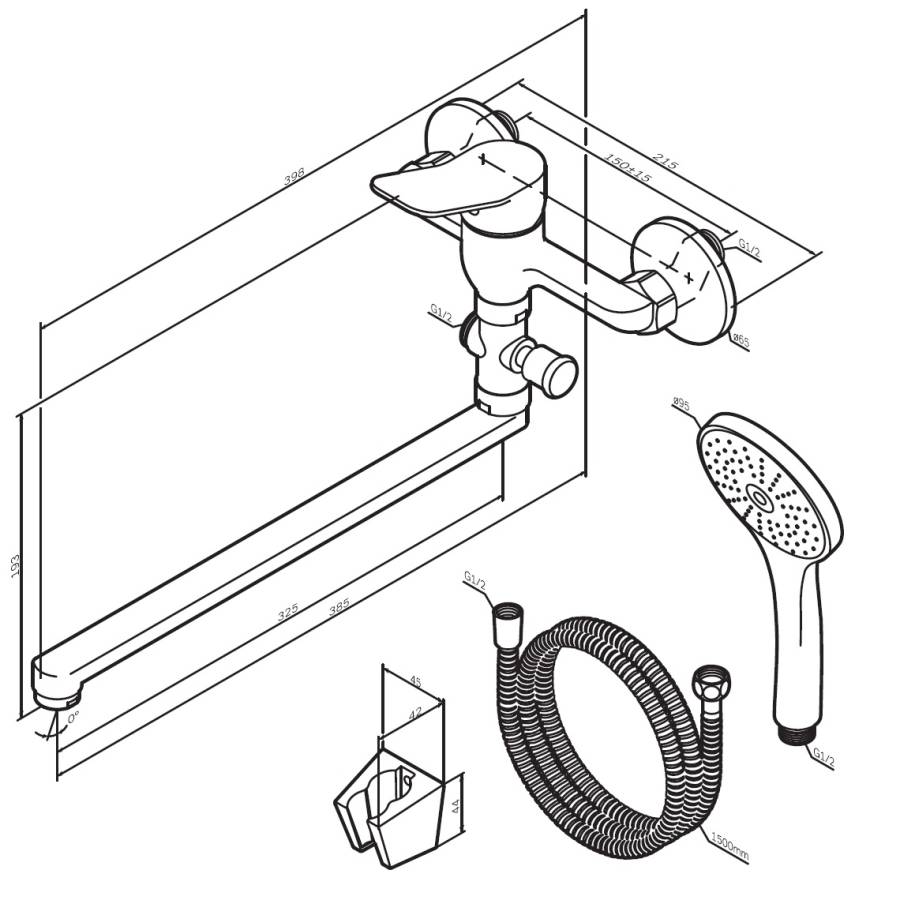 Функциональный держатель для ручного душа на два положения добавит удобства использования. Душевой шланг длиной 150 см позволит наслаждаться душем даже высокому человеку. Максимум функций за разумную плату в одном изделии!_x000D_