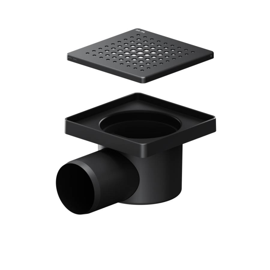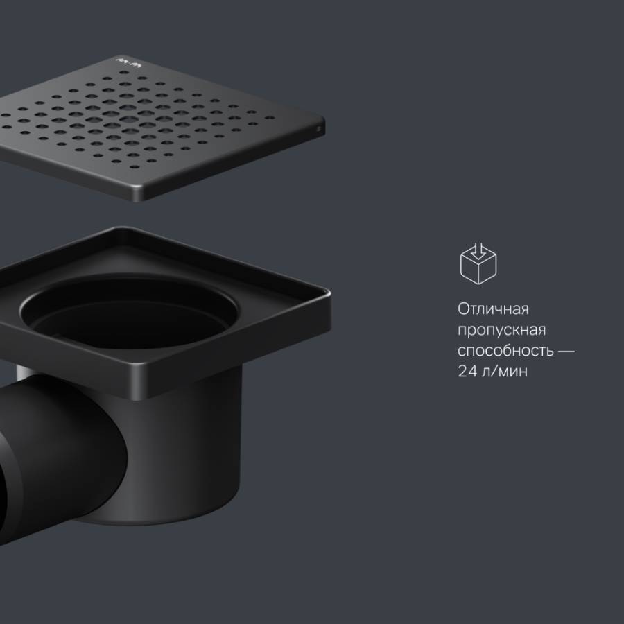 Выход изделия на 50 мм. Размер трапа 10 см. Дизайн продукта выполнен в элегантном матовом черном цвете. ""