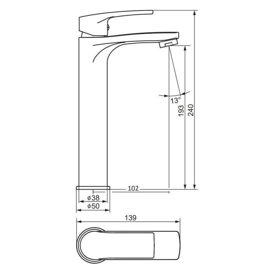 Высота излива см./мм.