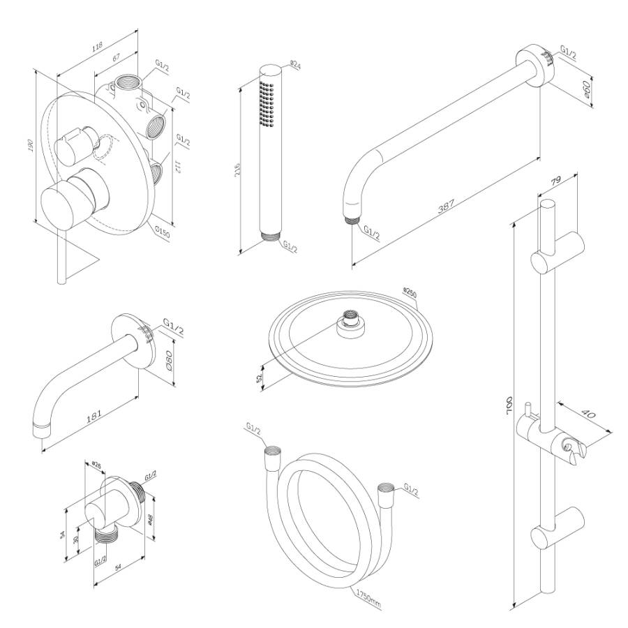 Размер верхнего душа мм.
