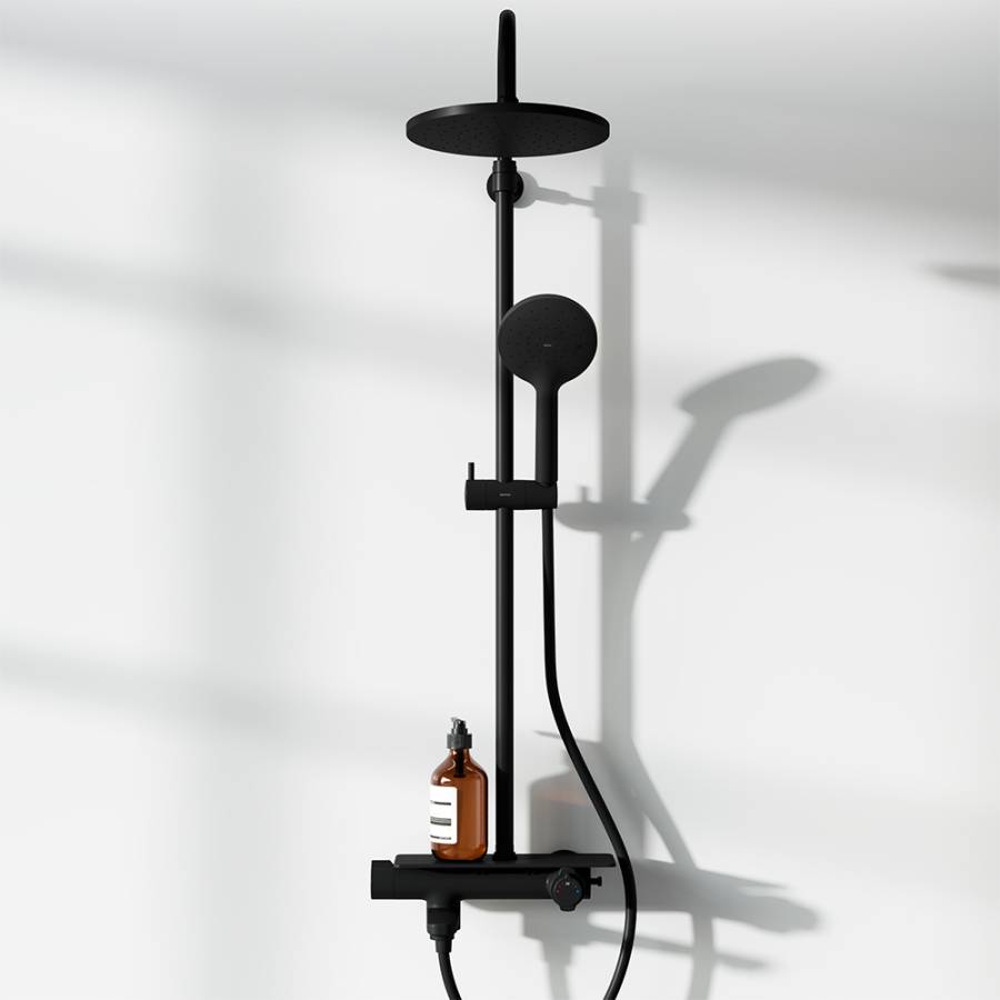 Инновационное PVD-покрытие гарантирует чрезвычайную прочность душевой системы. Матово-черная поверхность не выцветает с годами и устойчива к механическим повреждениям загрязнениям и отпечаткам пальцев. ""