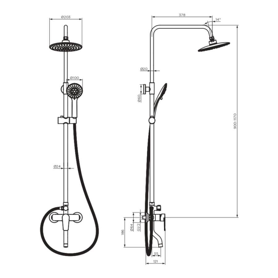 Стильные и большие лейки обеспечат комфортный напор воды а слайдер ручного душа и крепление верхнего позволит настроить нужное положение._x000D_