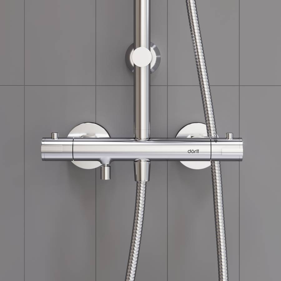 Термостат душевых систем в элегантных современных размерах предотвратит от ожогов даже при внезапном отключении холодной воды. Встроенный стопор безопасности на 38 градусов. _x000D_