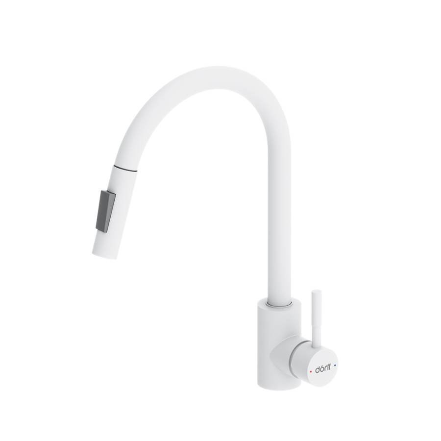 Утонченный элегантный дизайн сохранит свою актуальность на долгие годы и останется украшением на вашей кухне. Матовое покрытие в цвете Белый - никаких разводов и следов капель безупречный внешний вид смесителя всегда. Удобная эргономичная ручка-стик обеспечивает легкое управление напором воды в одно касание._x000D_