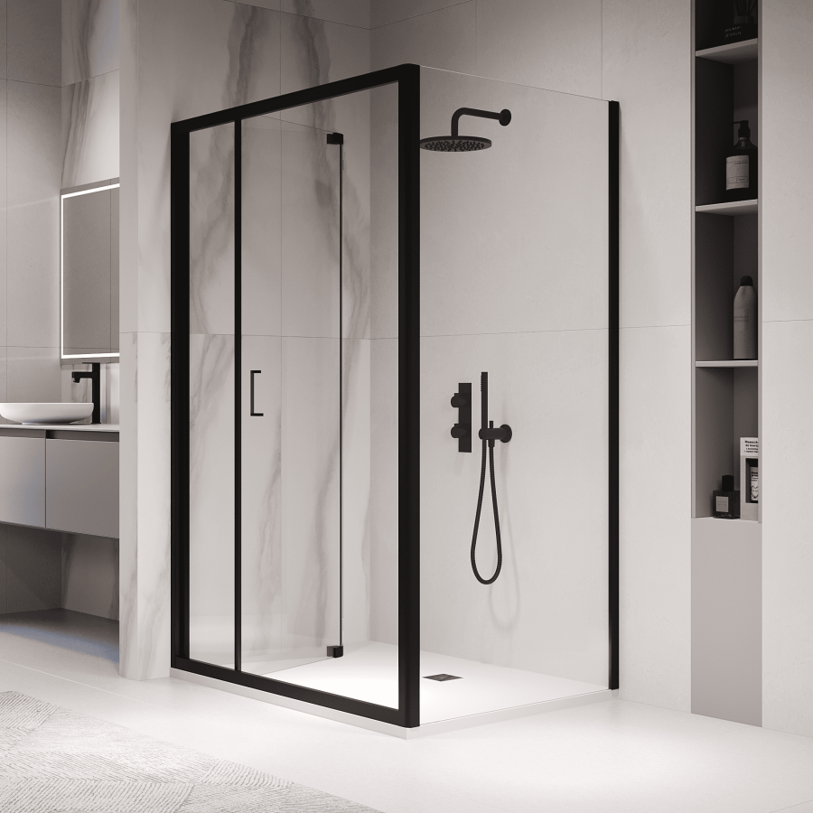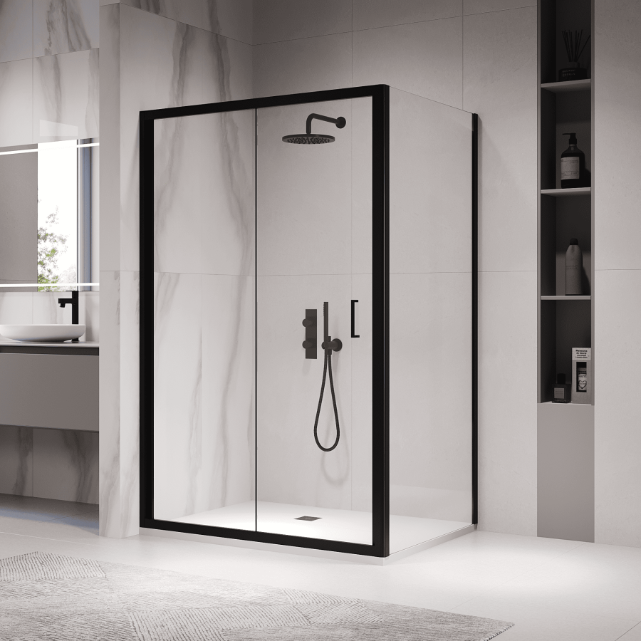 Стекло душевого уголка прозрачное, что придает ванной комнате ощущение простора и открытости. Цвет профиля черный, что придает душевому уголку современный и стильный вид. Материал профиля - анодированный алюминий, который устойчив к коррозии и обеспечивает долгий срок службы товара.