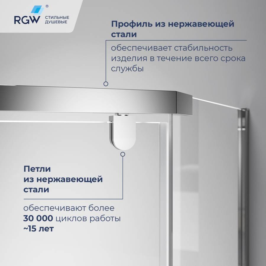 Ресурс эксплуатации данного душевого уголка составляет 15 лет, что является отличным показателем его качества и надежности. Производитель уверен в долговечности своего изделия и предоставляет гарантию на душевой уголок RGW PA-83 в течение 3 лет.