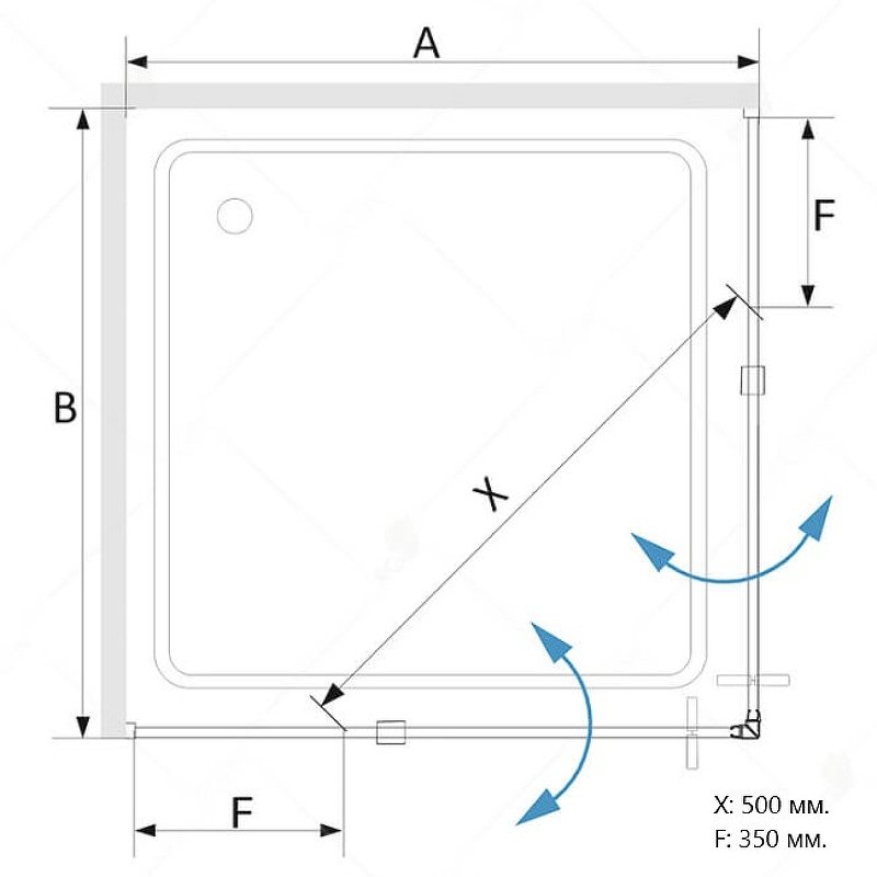Конструкция дверей уголка маятниковая, что обеспечивает легкость использования и отличную герметичность, так как они плотно закрываются. Уголок имеет класс герметичности 1, что означает полную защиту от протечек и брызг воды во время использования.