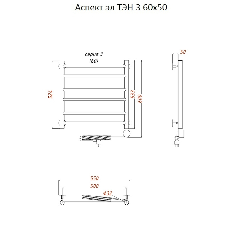 Электропровод с вилкой; Направление подключения: Левое, Правое |