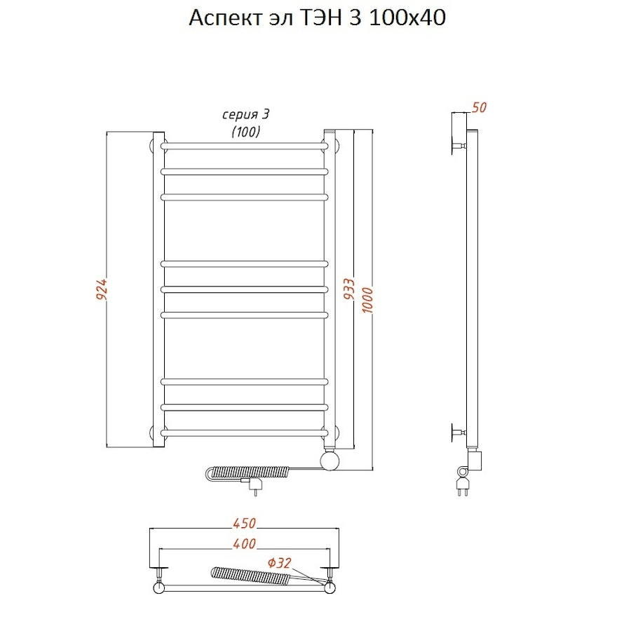 ТЭН 300 Вт, Бытовой антифриз, Заглушка с воздухоотводчиком |