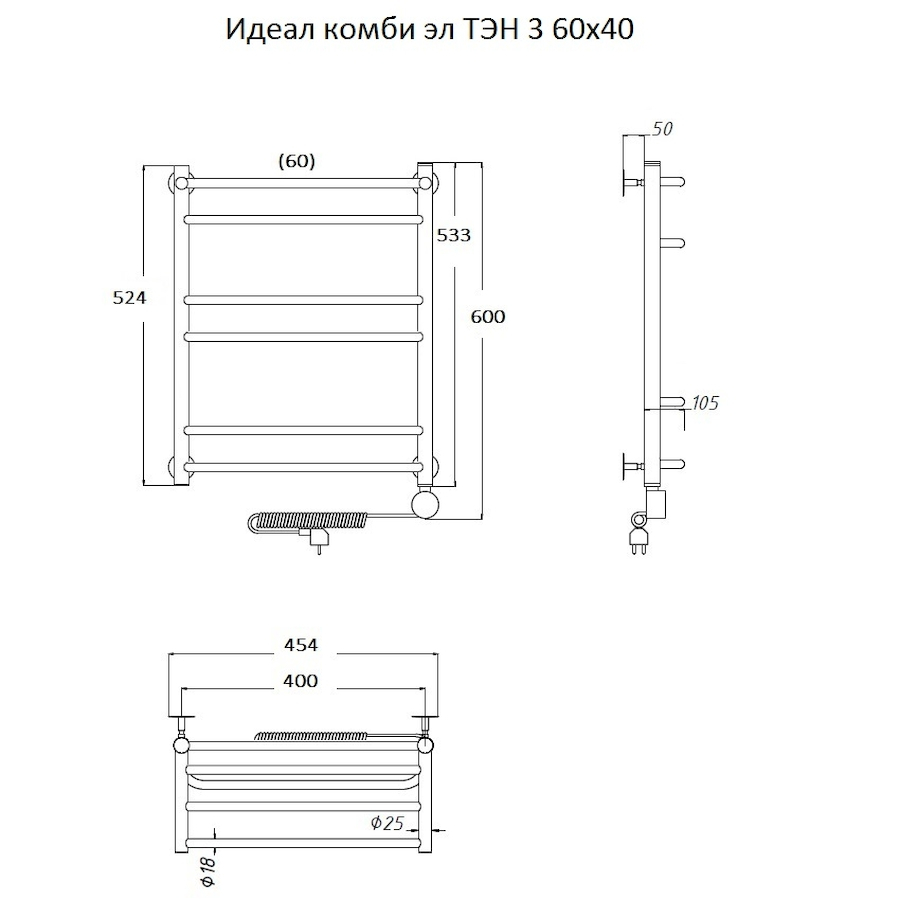 ТЭН 300 Вт, Бытовой антифриз, Заглушка с воздухоотводчиком |