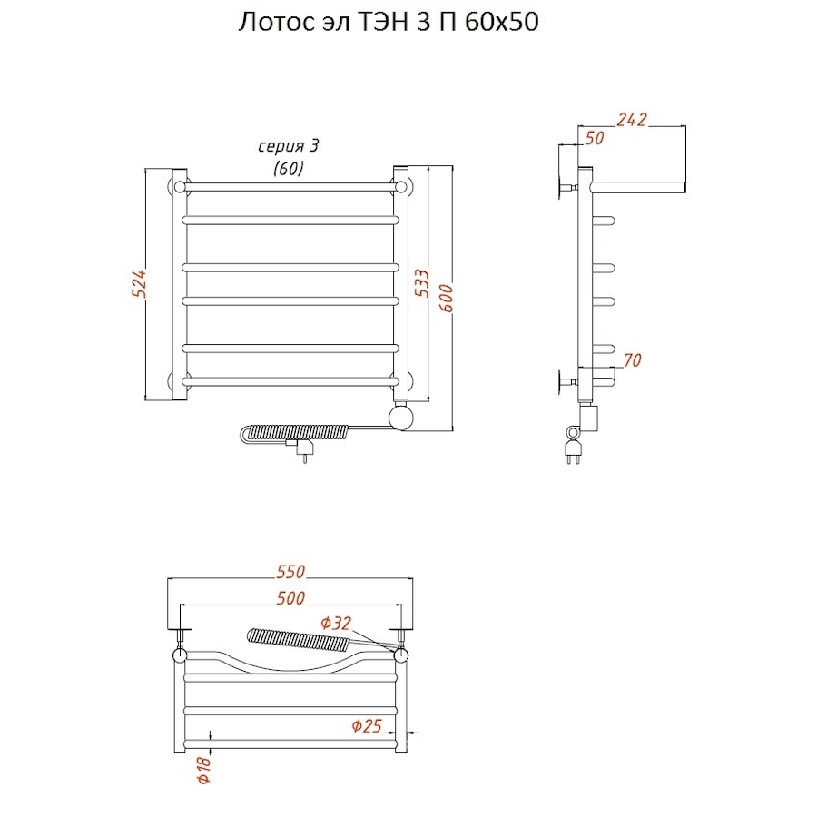 Электропровод с вилкой; Направление подключения: Левое, Правое |