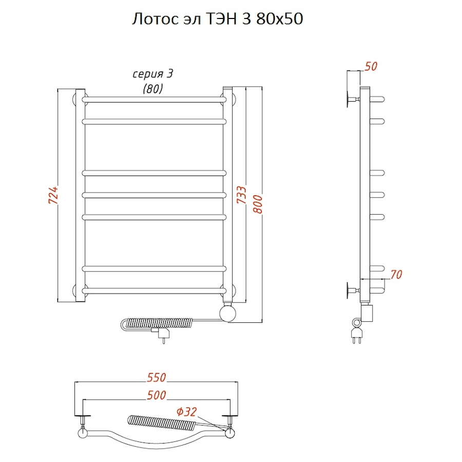 Электропровод с вилкой; Направление подключения: Левое, Правое |