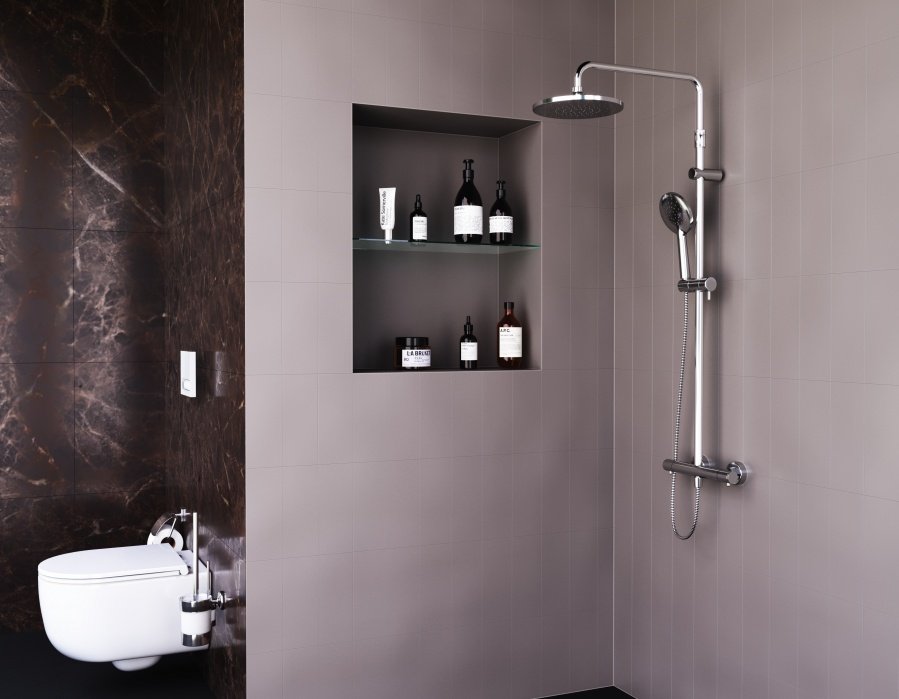 Термостат душевых систем в элегантных современных размерах предотвратит от ожогов и станет изящным аксессуаром.