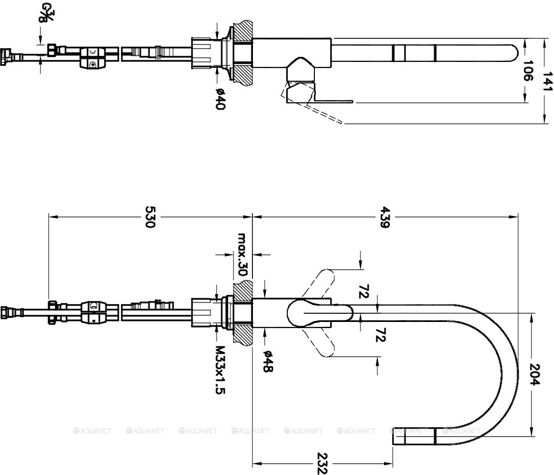 Высота излива см./мм.