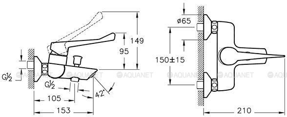 • Подключение душевого шланга 1/2"
