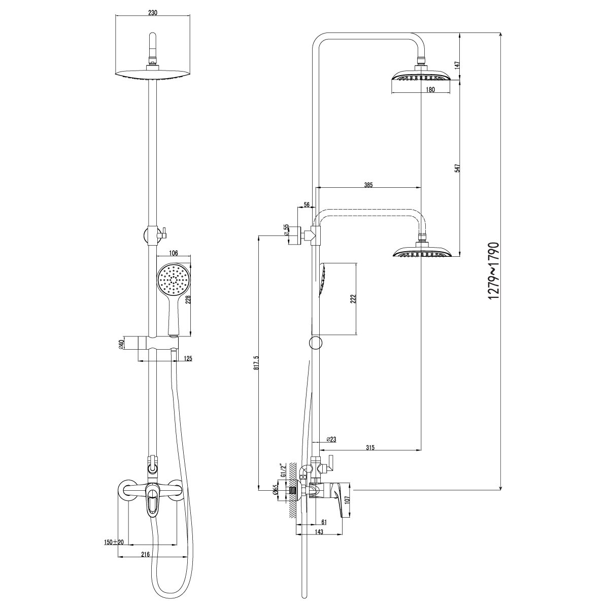 Верхний душ, Держатель для душа, Душевая лейка, Шланг для душа |