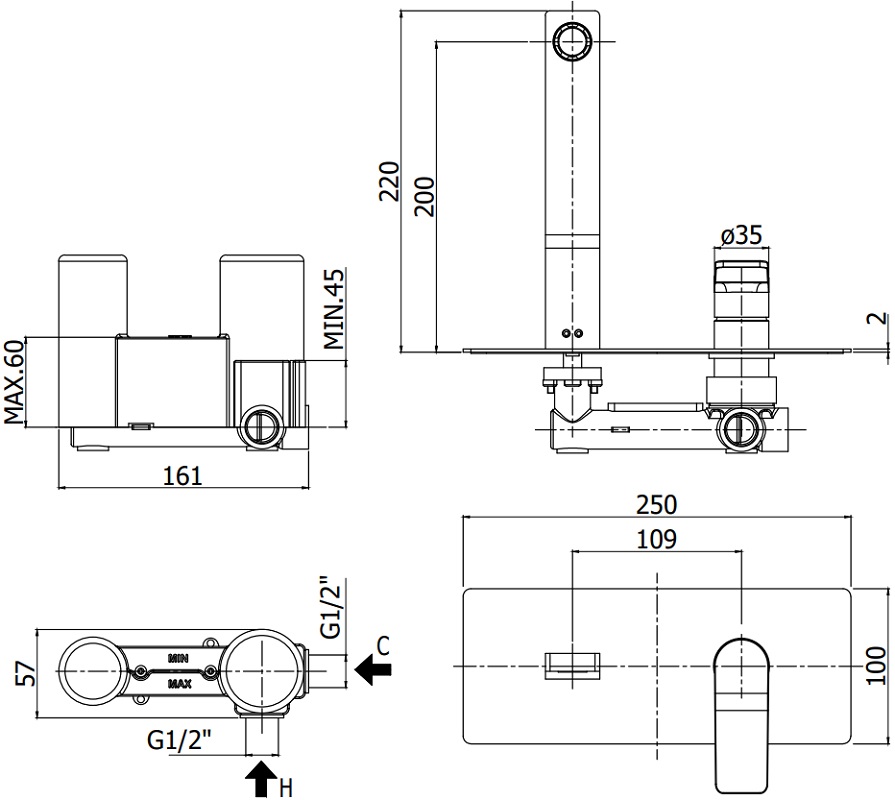 Длина излива см./мм.
