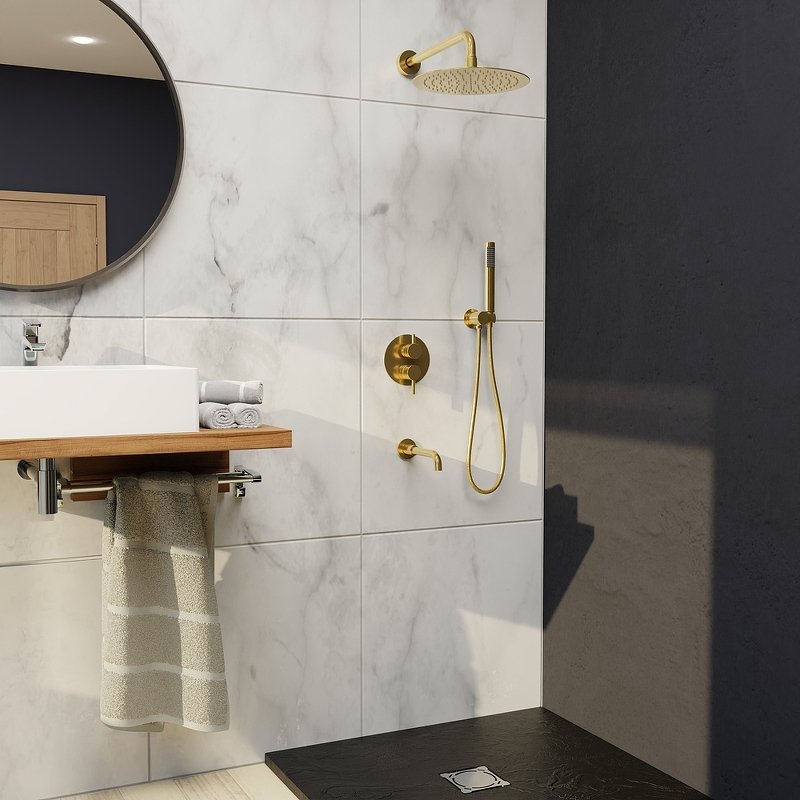 Встраиваемая душевая система выполнена из латуни и нержавеющей стали, что придаёт изделию повышенную устойчивость к образованию коррозии и ржавчины, а внутренний элемент оснащён керамическими пластинами. За счет применения передовых технологий душевые системы рассчитаны на ресурс эксплуатации не менее 10 лет.