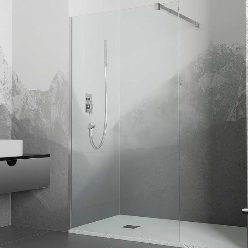 Перегородка изготовлена из закаленного стекла толщиной 10 мм, что обеспечивает надежность и долговечность изделия. Прозрачное стекло позволяет вам наслаждаться свежими ощущениями во время принятия душа, создавая визуальное пространство и эффект простора в ванной комнате. Благодаря анодированному алюминиевому профилю цвета хром, перегородка идеально сочетается со стилем вашей ванной комнаты и добавляет элегантность и современность в интерьер.