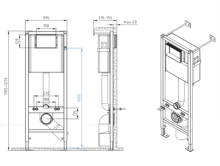 Инсталляция, Комплект креплений, Смывной бачок, Устройство слива |
