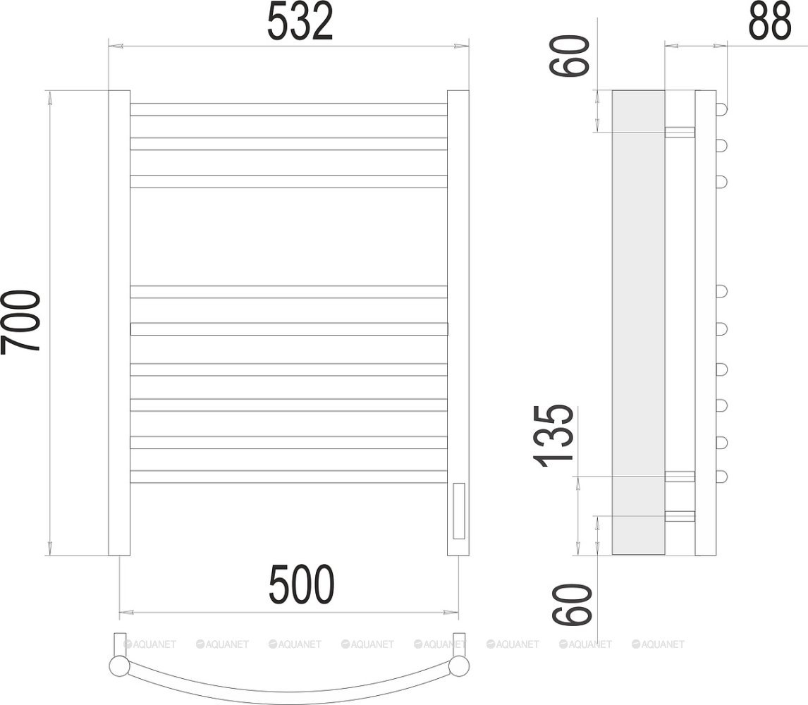 Полотенцесушитель - 1 шт.,Терморегулятор - 1 шт.,Комплект креплений - 1 шт.,Электрический кабель - 1 шт., |
