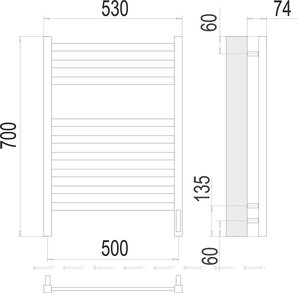 Полотенцесушитель - 1 шт.,Терморегулятор - 1 шт.,Комплект креплений - 1 шт.,Электрический кабель - 1 шт., |