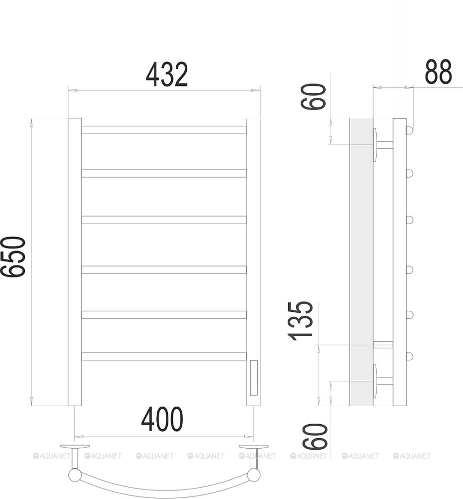 Полотенцесушитель - 1 шт.,Терморегулятор - 1 шт.,Комплект креплений - 1 шт.,Электрический кабель - 1 шт. |