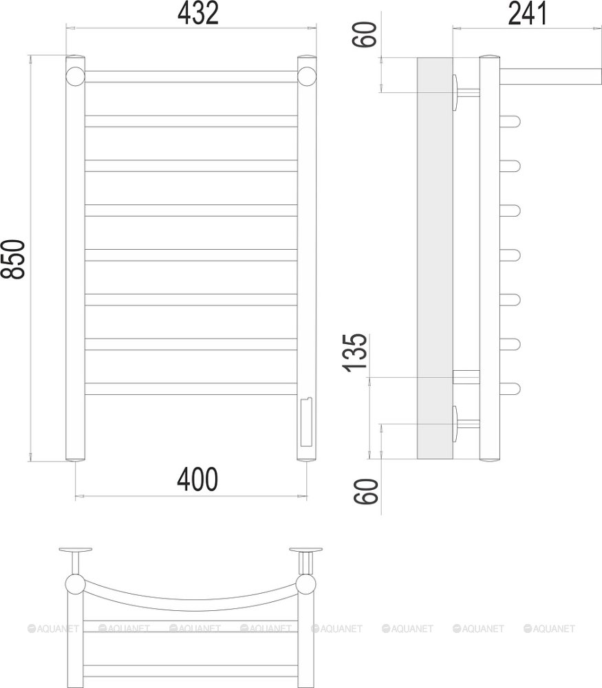 Полотенцесушитель - 1 шт.,Терморегулятор - 1 шт.,Комплект креплений - 1 шт.,Электрический кабель - 1 шт. |