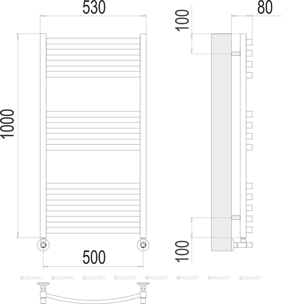 Полотенцесушитель - 1 шт.,Комплект креплений - 1 шт.,Комплект декоративных заглушек - 1 шт.,Кран Маевского - 1 шт.,Эксцентрик - 2 шт.,Отражатель - 2 шт.,Вентиль - 2 шт., |