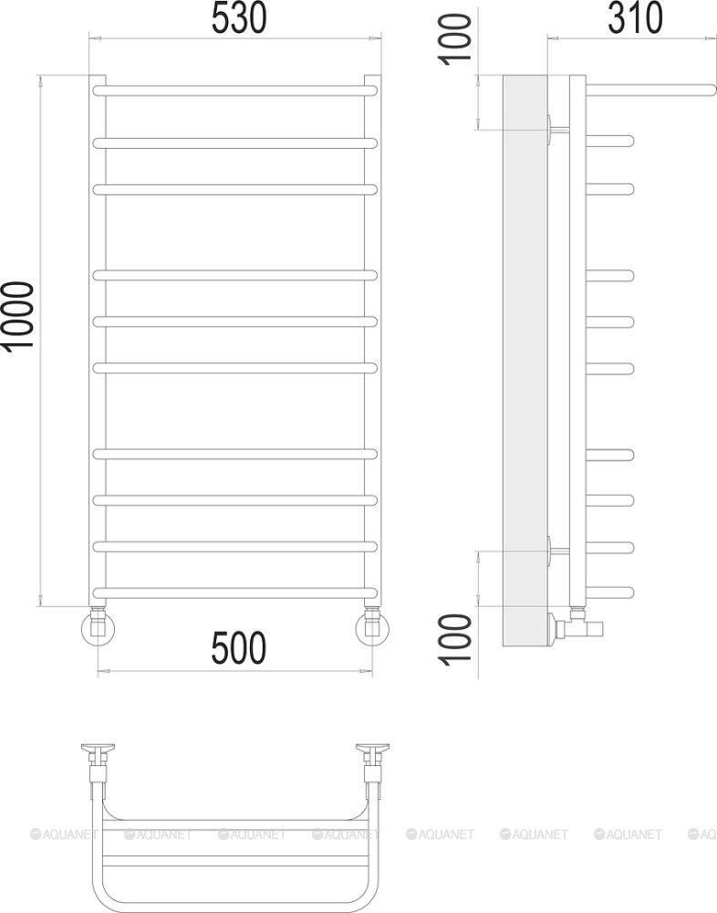 Полотенцесушитель - 1 шт.,Комплект креплений - 1 шт.,Комплект декоративных заглушек - 1 шт.,Кран Маевского - 1 шт.,Отражатель - 2 шт., |