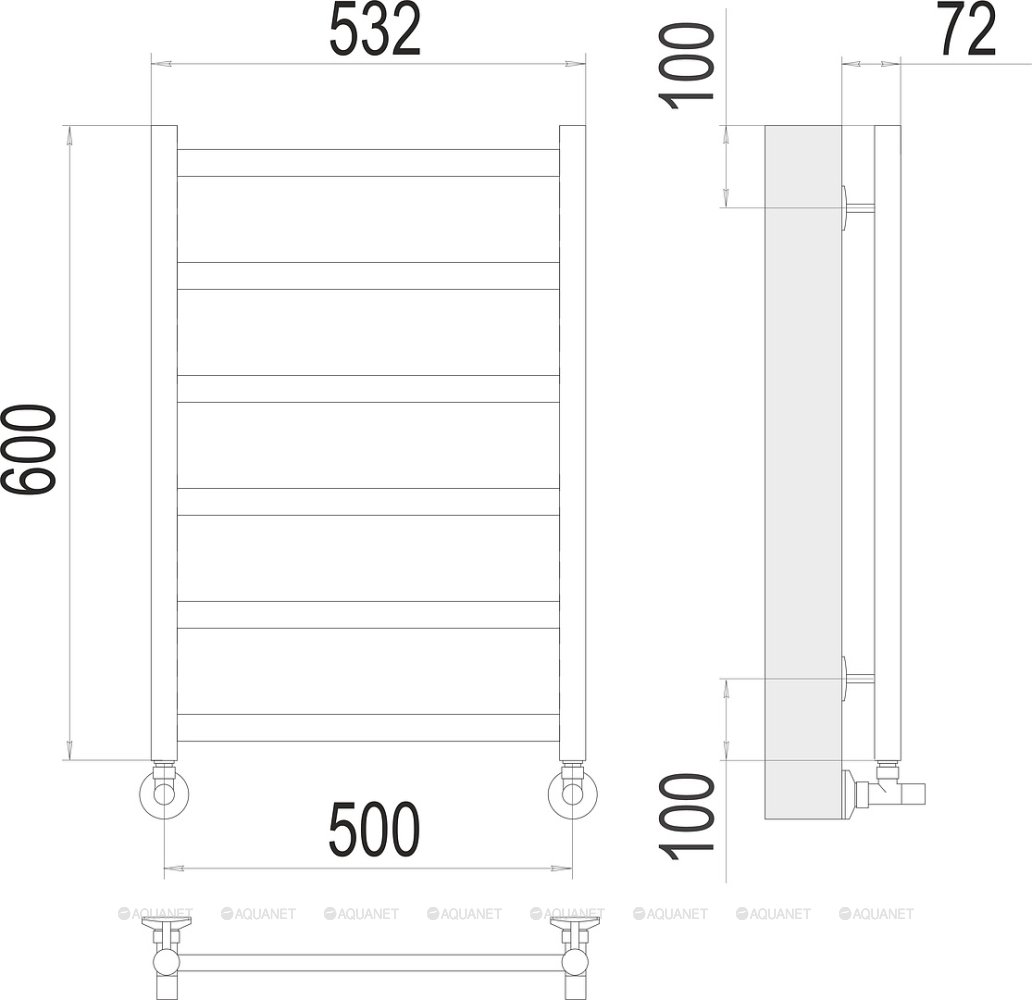 Полотенцесушитель - 1 шт.,Комплект креплений - 1 шт.,Комплект декоративных заглушек - 1 шт.,Кран Маевского - 1 шт., |