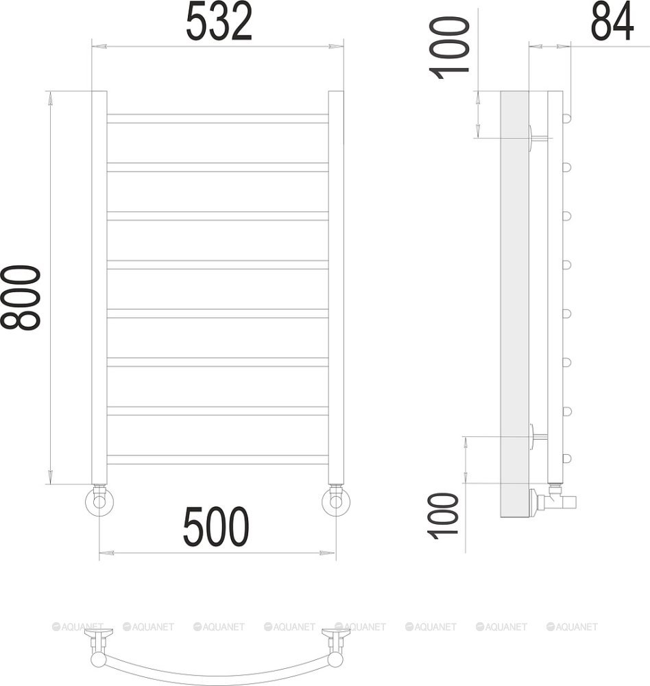 Полотенцесушитель - 1 шт.,Комплект креплений - 1 шт.,Комплект декоративных заглушек - 1 шт.,Кран Маевского - 1 шт., |
