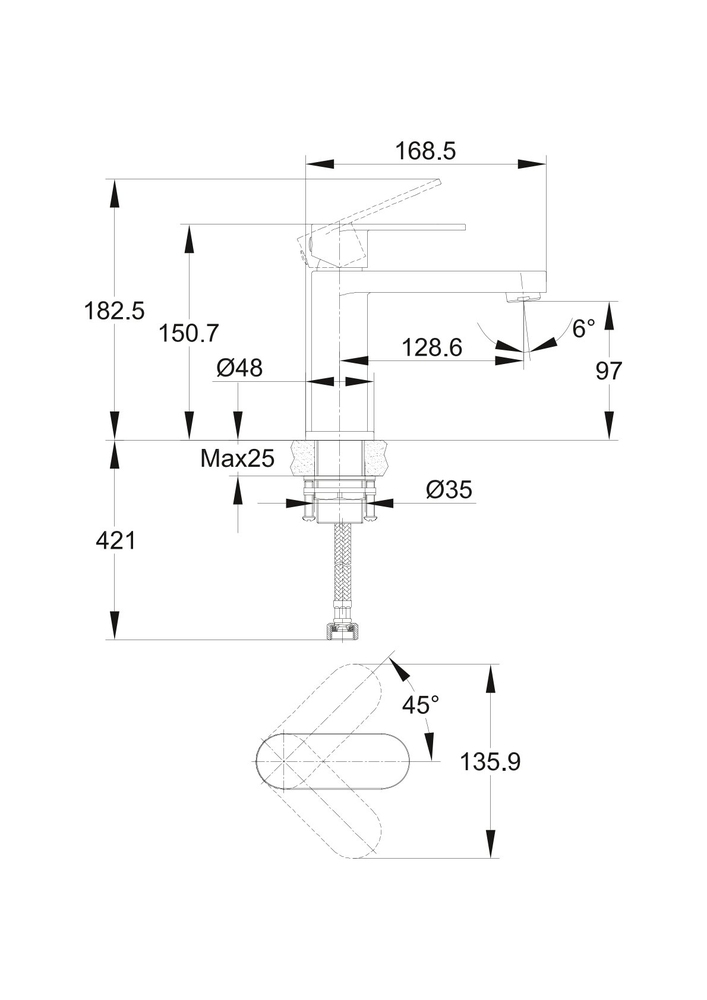 Высота излива см./мм.